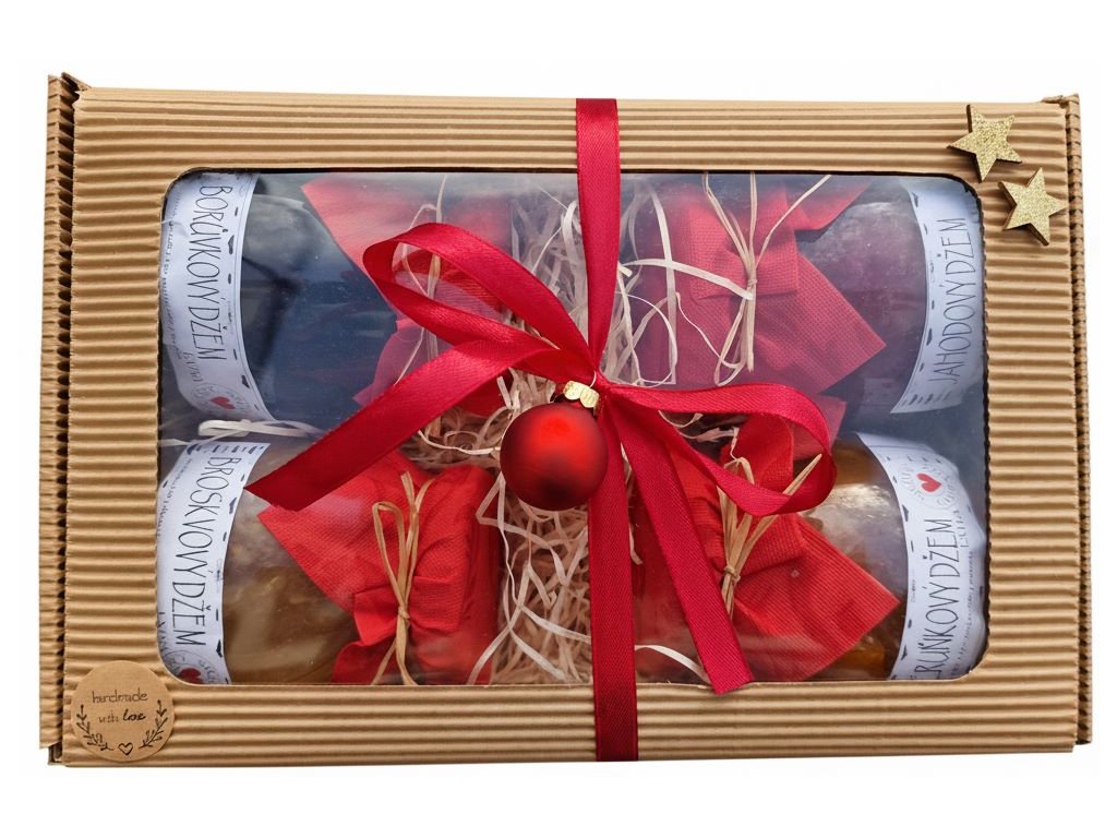 Balení obsahuje 4 ks džemů 250 g - jahodový, meruňkový, borůvkový a broskvový.